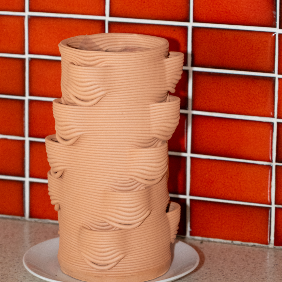 The vessel embodies a new design language, with ceramic 3D printing merging algorithmic precision with handmade variation. All museums have ceramics that tell us how societies lived, and Mycelia House shares the story of now.
